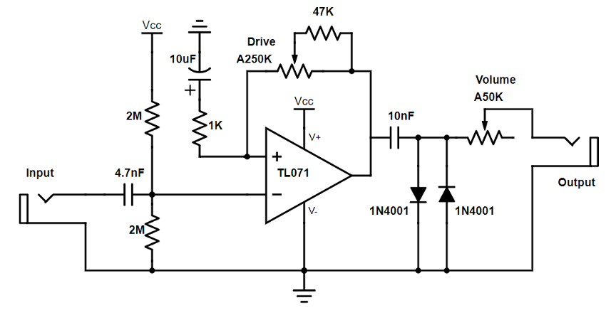 - SCHEMATIC This circuit is loosely based on the DOD250 or MXR Dist+ circuit with a few tweaks. |